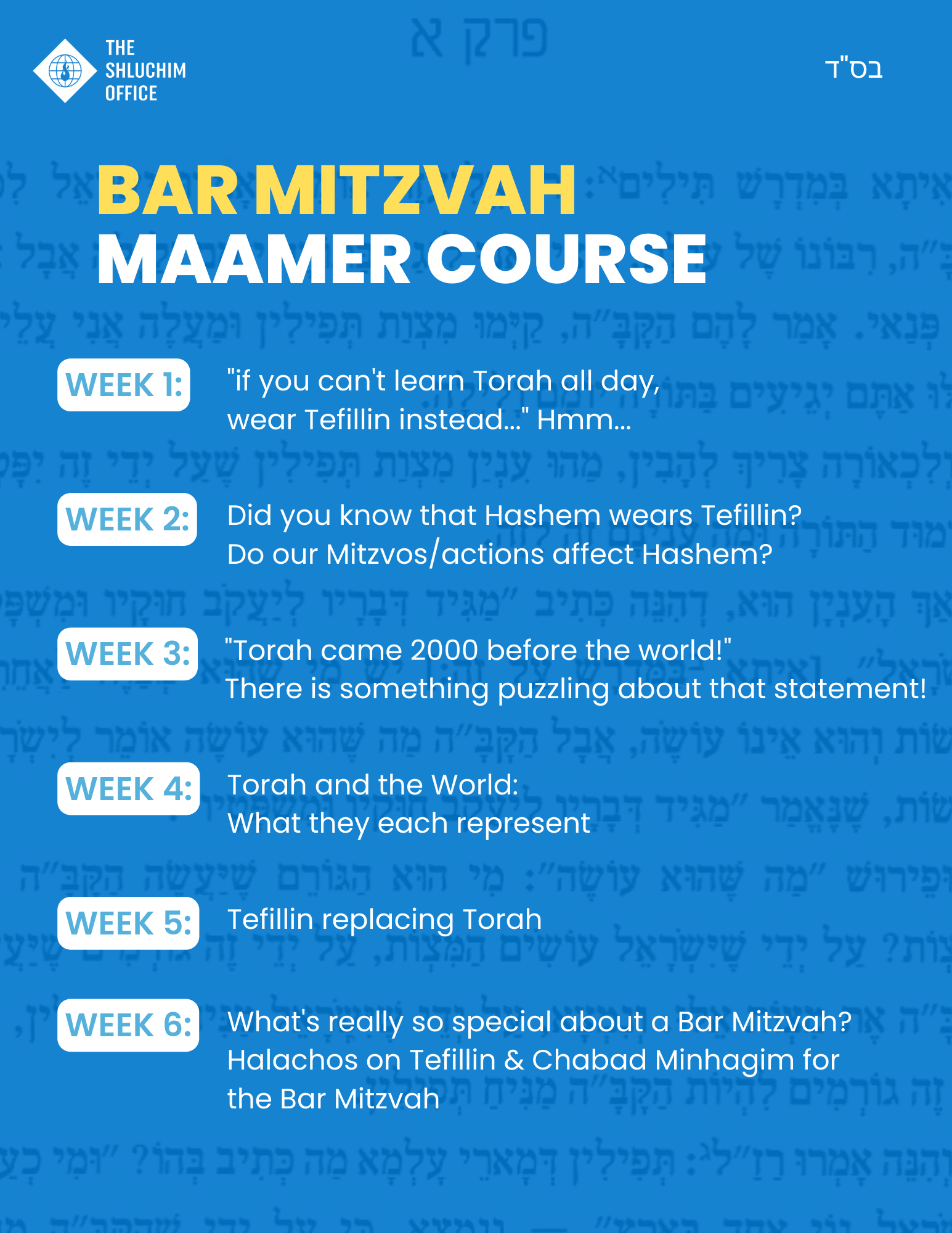 The Shluchim Office is back again with our widely successful online Bar Mitzvah Maamer course!