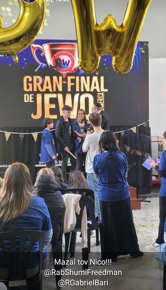 Cecilia watched with pride as her sons embraced the program with enthusiasm. Then came the big moment: Nico won first place in the Argentina JewQ competition with their JOS Rebbi, Rabbi Bari at his side!